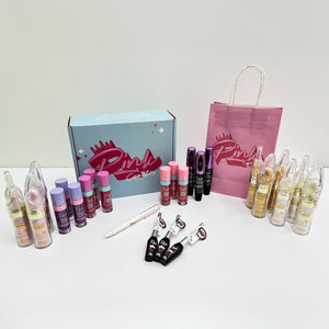 Cada kit incluye una selección de productos de alta rotación: polvo de hadas, brillos mágicos, pestañinas, delineadores, lapicero y bolsita de regalo. Perfecto para ofrecer servicios o iniciar ventas independientes. ¡Todo lo que necesitas en un solo kit práctico, económico y funcional!